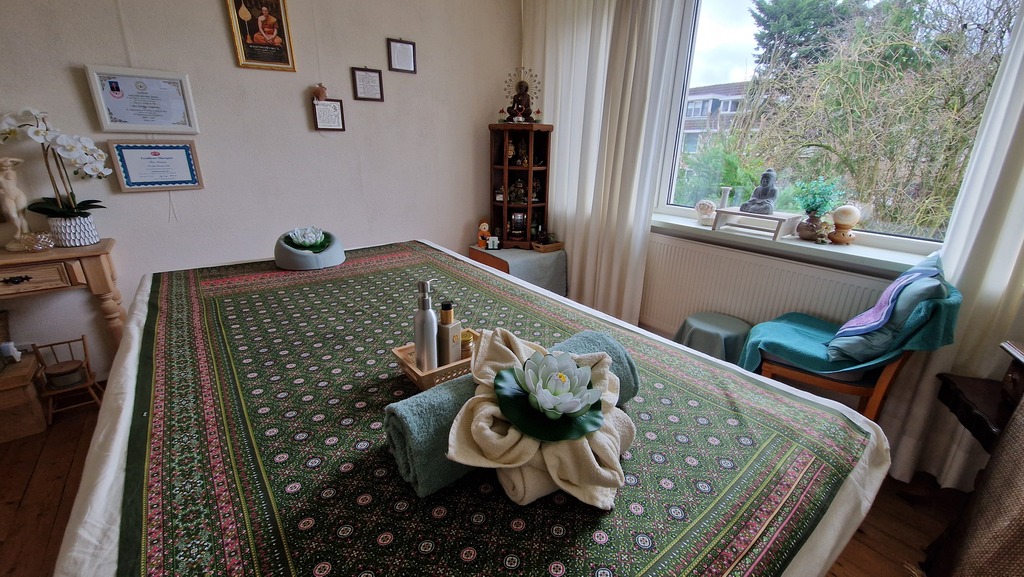 U wordt ontvangen in een ruime, serene en perfect hygiënische behandelkamer, waar rust en comfort samenkomen.